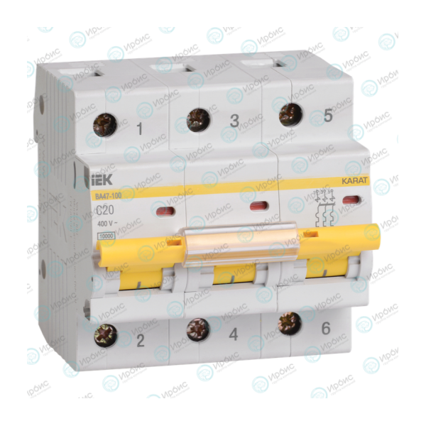 Выключатель автоматический ВА47-100 3P 20А 10кА х-ка C, IEK MVA40-3-020-C