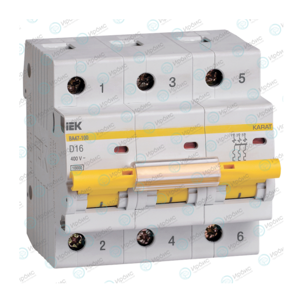 Выключатель автоматический ВА47-100 3Р 16А 10кА х-ка D, IEK MVA40-3-016-D