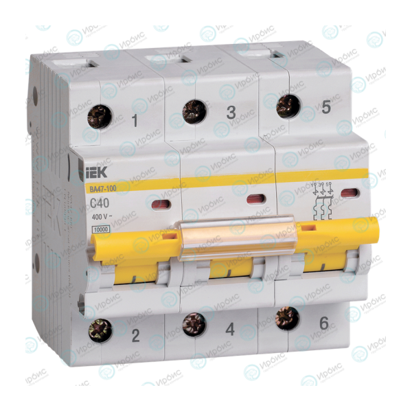 Выключатель автоматический ВА47-100 3Р 40А 10кА х-ка С, IEK MVA40-3-040-C
