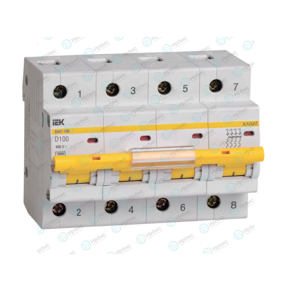 Выключатель автоматический ВА47-100 4Р 100А 10кА х-ка D, IEK MVA40-4-100-D