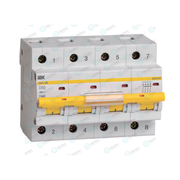 Выключатель автоматический ВА47-100 4Р 50А 10кА х-ка D, IEK MVA40-4-050-D