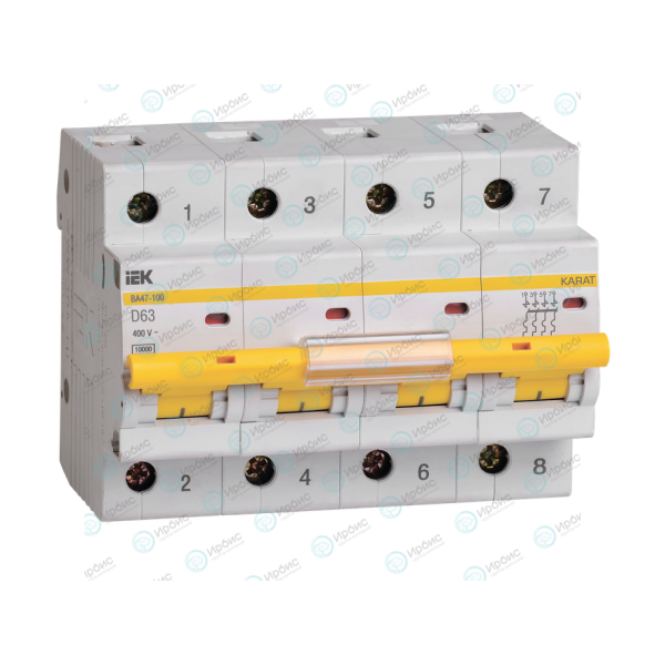 Выключатель автоматический ВА47-100 4Р 63А 10кА х-ка D, IEK MVA40-4-063-D