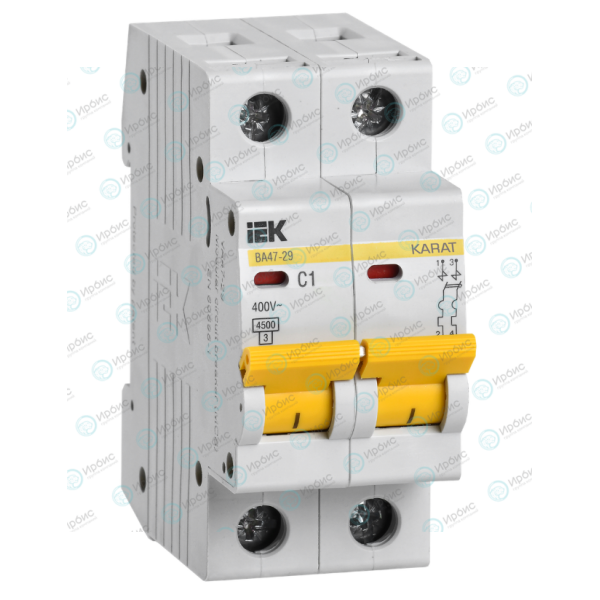 Выключатель автоматический ВА47-29 2P 1А 4,5кА х-ка В, IEK MVA20-2-001-B