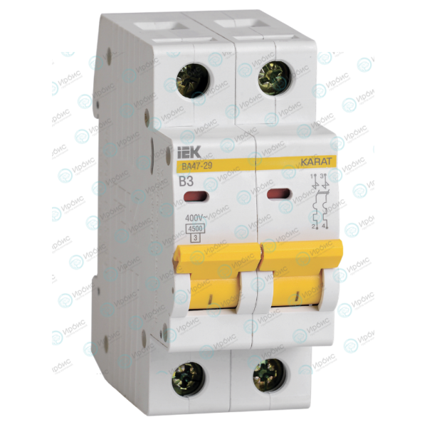 Выключатель автоматический ВА47-29 2P 3А 4,5кА х-ка В, IEK MVA20-2-003-B