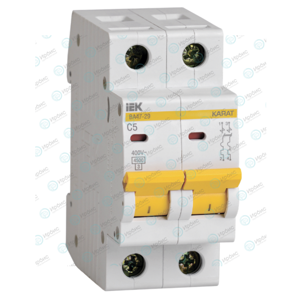Выключатель автоматический ВА47-29 2Р 5А 4,5кА х-ка С, IEK MVA20-2-005-C