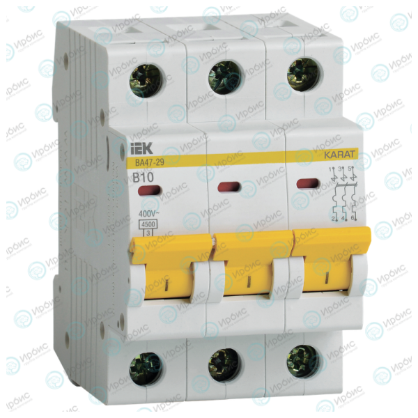 Выключатель автоматический ВА47-29 3P 10А 4,5кА х-ка В, IEK MVA20-3-010-B