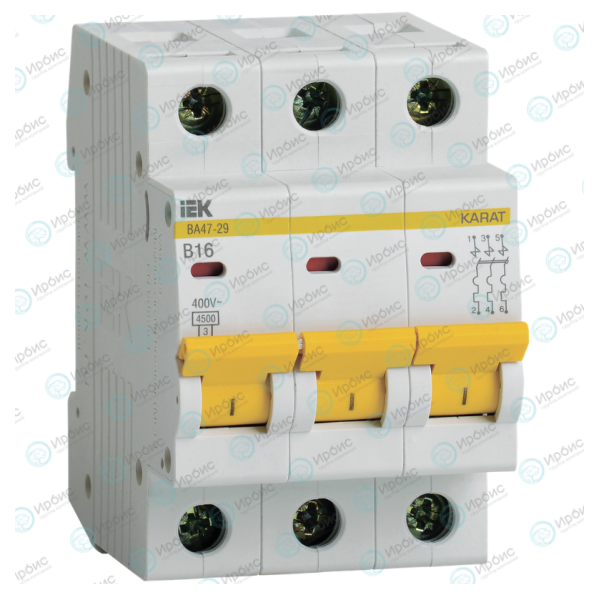 Выключатель автоматический ВА47-29 3P 16А 4,5кА х-ка В, IEK MVA20-3-016-B