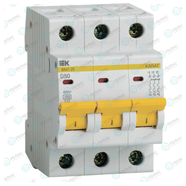 Выключатель автоматический ВА47-29 3Р 50А 4,5кА х-ка D, IEK MVA20-3-050-D