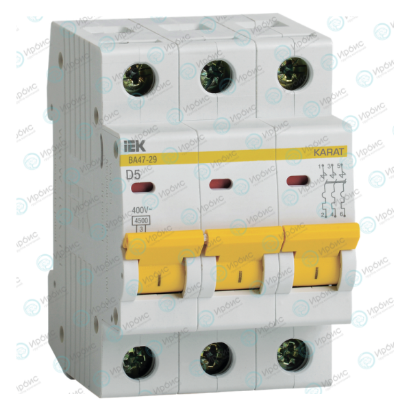 Выключатель автоматический ВА47-29 3Р 5А 4,5кА х-ка D, IEK MVA20-3-005-D