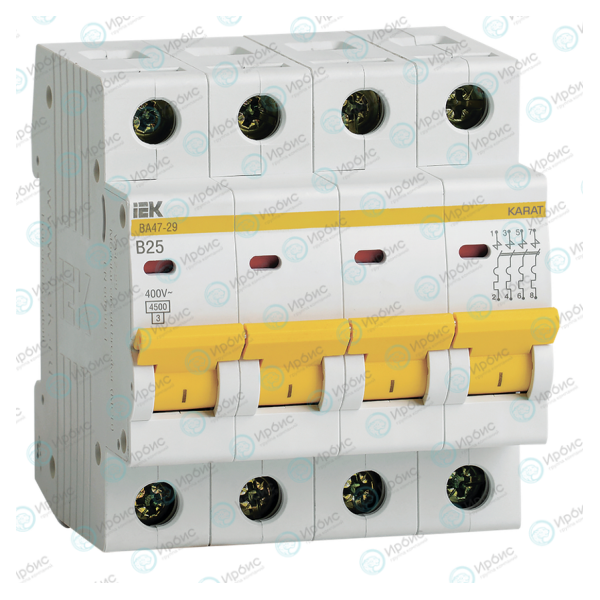 Выключатель автоматический ВА47-29 4P 25А 4,5кА х-ка В, IEK MVA20-4-025-B