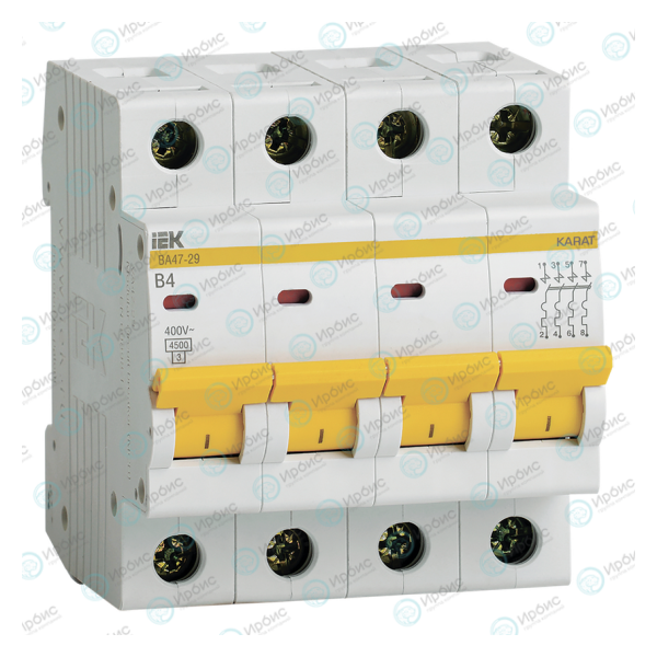 Выключатель автоматический ВА47-29 4P 4А 4,5кА х-ка В, IEK MVA20-4-004-B