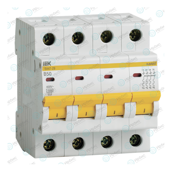 Выключатель автоматический ВА47-29 4P 50А 4,5кА х-ка В, IEK MVA20-4-050-B