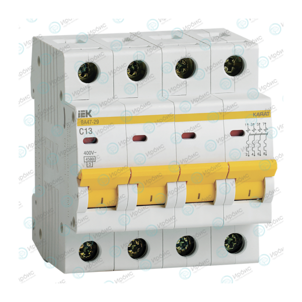 Выключатель автоматический ВА47-29 4Р 13А 4,5кА х-ка С, IEK MVA20-4-013-C