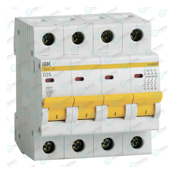 Выключатель автоматический ВА47-29 4Р 25А 4,5кА х-ка D, IEK MVA20-4-025-D