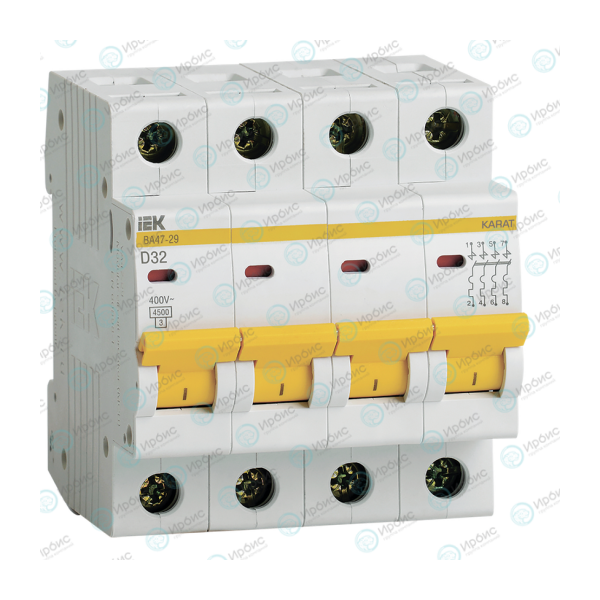 Выключатель автоматический ВА47-29 4Р 32А 4,5кА х-ка D, IEK MVA20-4-032-D