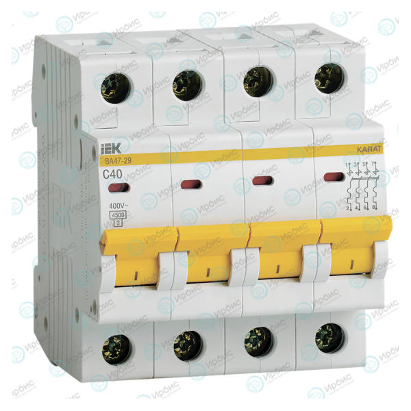 Выключатель автоматический ВА47-29 4Р 40А 4,5кА х-ка С, IEK MVA20-4-040-C