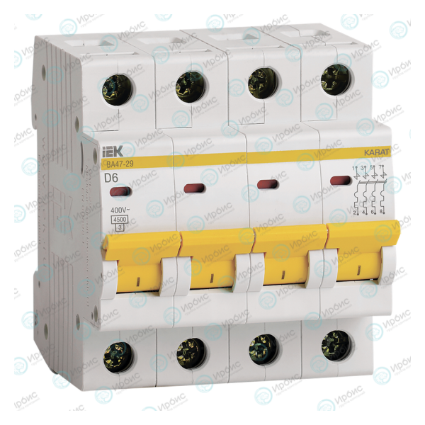 Выключатель автоматический ВА47-29 4Р 6А 4,5кА х-ка D, IEK MVA20-4-006-D