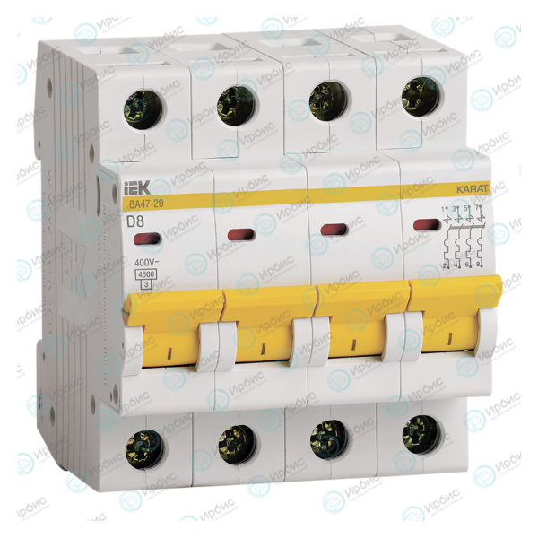 Выключатель автоматический ВА47-29 4Р 8А 4,5кА х-ка D, IEK MVA20-4-008-D