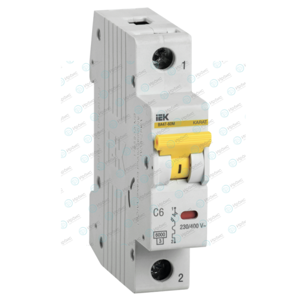 Выключатель автоматический ВА47-60M 1P 6А 6кА х-ка C, IEK MVA31-1-006-C