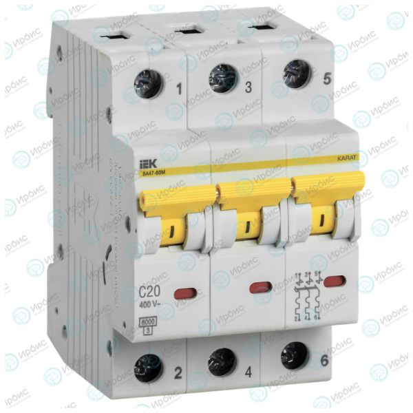 Выключатель автоматический ВА47-60M 3P 20A 6кА х-ка C, IEK MVA31-3-020-C