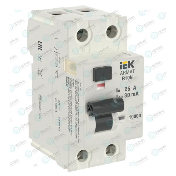 Выключатель дифференциального тока ARMAT R10N 2P 25А 30мА тип AC, IEK AR-R10N-2-025C030