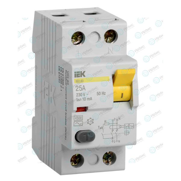 Выключатель дифференциальный ВД1-63 2Р 25А 10мА, IEK MDV10-2-025-010