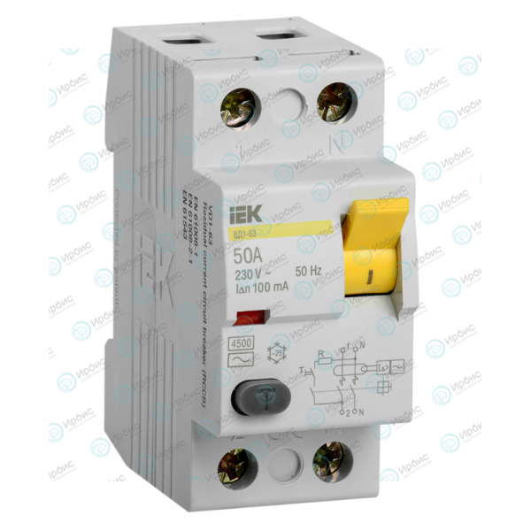 Выключатель дифференциальный ВД1-63 2Р 50А 100мА, IEK MDV10-2-050-100