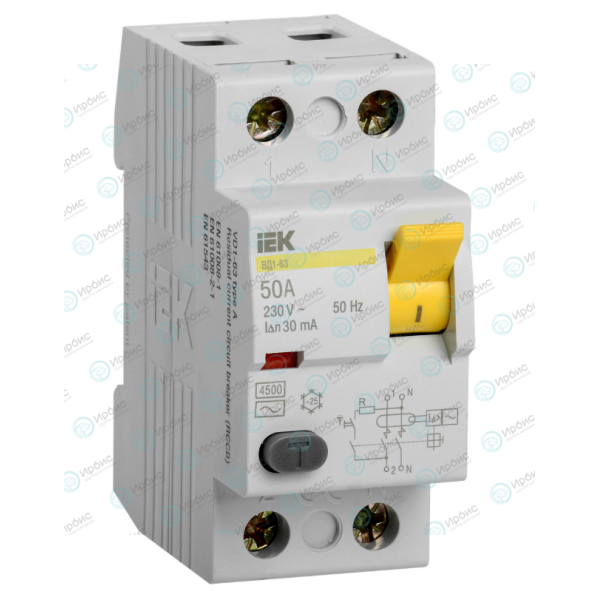 Выключатель дифференциальный ВД1-63 2Р 50А 30мА, IEK MDV10-2-050-030