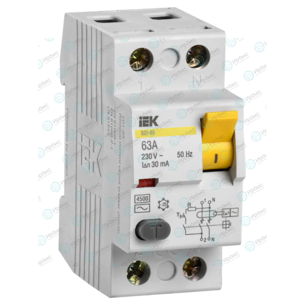 Выключатель дифференциальный ВД1-63 2Р 63А 30мА, IEK MDV10-2-063-030