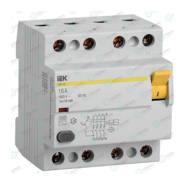 Выключатель дифференциальный ВД1-63 4Р 16А 10мА, IEK MDV10-4-016-010
