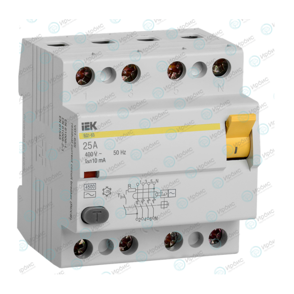 Выключатель дифференциальный ВД1-63 4Р 25А 10мА, IEK MDV10-4-025-010