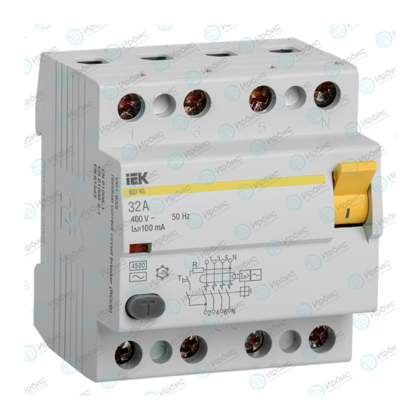 Выключатель дифференциальный ВД1-63 4Р 32А 100мА, IEK MDV10-4-032-100