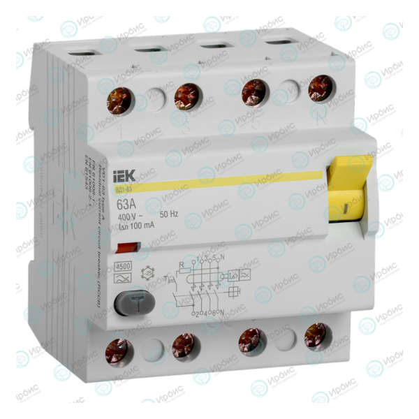 Выключатель дифференциальный ВД1-63 4Р 63А 100мА тип А, IEK MDV11-4-063-100
