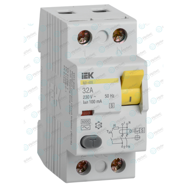Выключатель дифференциальный ВД1-63S 2Р 32А 100мА, IEK MDV12-2-032-100