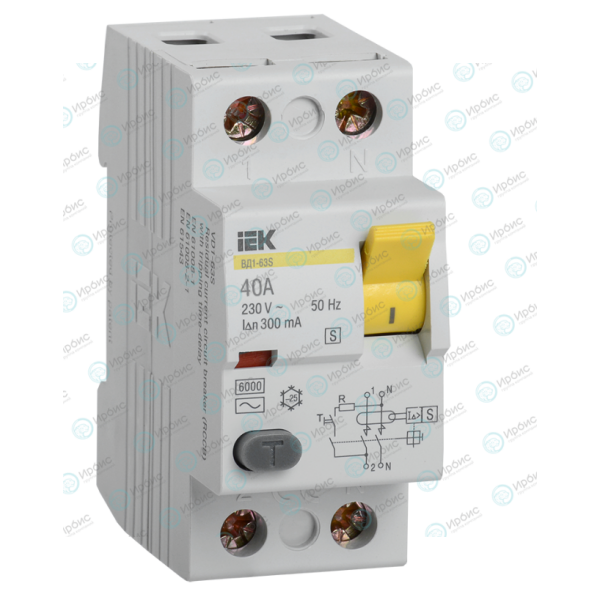 Выключатель дифференциальный ВД1-63S 2Р 40А 300мА, IEK MDV12-2-040-300