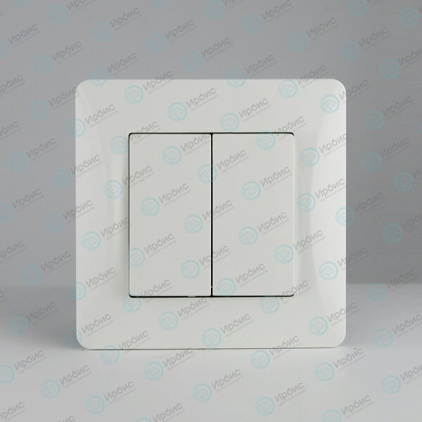 Выключатель двухклавишный, 10А, 220-250V (белый) используется для управления источником освещения из одной точки. Применяется для скрытого монтажа в стены в подрозетник или накладную монтажную коробку глубиной не менее 40мм.