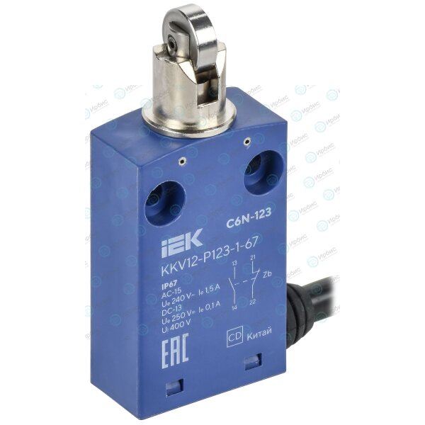 Выключатель концевой C6N-123 вертикальный толкатель с нажимным роликом IP67 IEK