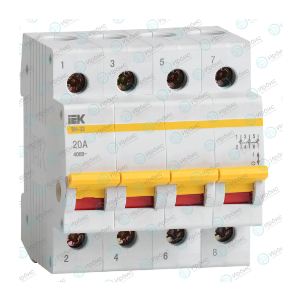Выключатель нагрузки (мини-рубильник) ВН-32 4Р 20А, IEK MNV10-4-020