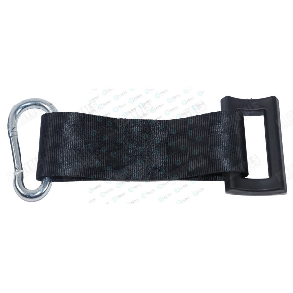 Зажим подвесной поддерживающий используется для размещения оптоволоконного кабеля на промежуточных опорах линий электропередач и линий связи при любых углах поворотов. Изготовлен из текстильного нейлона, пластикового зажима и металлического карабина для возможности подвеса к любому узлу крепления или кронштейну. Рассчитан на длину пролетов до 40 метров между опорами. Зажим монтируется в виде петли.