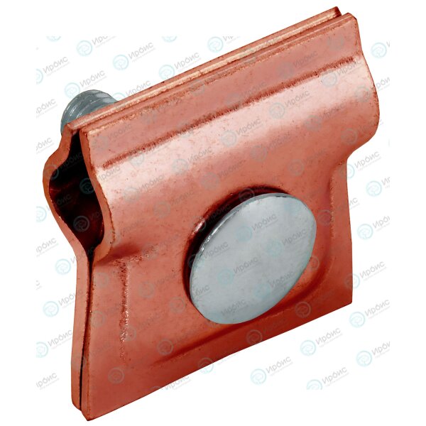Крепится к кровле при помощи метизов. Зажим проводника происходит при помощи болтового соединения. Материал корпуса - медь.